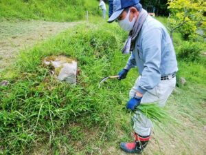 2022年5月活動 活動日: 2022年5月28日(土) 3年ぶりの田植えです。 大阪国際大学プレッパーズ部のみなさんに。 草刈りは、パナソニック松愛会のみなさんに頑張っていただきました。 パナソニックエコリレージャパンスタッフ含め総勢26名の参加です。