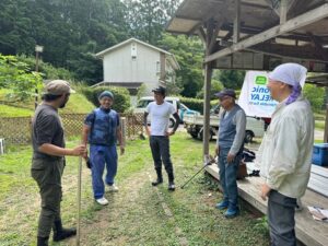 2023年8月活動 活動日: 2023年8月19日(土) 丸太デッキづくりスタートしました。 まずは、基礎づくりです。 単管を活用しました。 今回は仮設です。強度など、今後の課題です。 とりあえず、制作の目途(目処)がつきました。