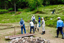 田植え後には獣害棚設置と周辺の草刈りを行いました。